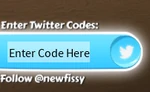 Codes are given out by NewFissy on Twitter or Discord. These codes give exclusive items, commonly Gold or Silver and can only be redeemed once.